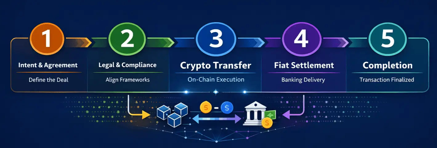 By treating crypto as a settlement rail—not a shortcut—we ensure transactions remain clean, transparent, and enforceable.